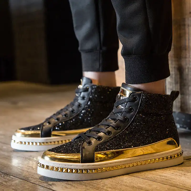 Zapatillas altas negras de moda para hombre, zapatillas brillantes para Bar Club, discoteca, espejos, calzado, plataforma Hop, zapatos casuales para hombre| | - AliExpress zapatillas altas negras