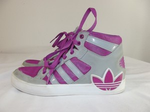 Adidas Hi Top Tenis Zapatos-Gris/púrpura rosa Talla 4 1/2 jóvenes tenis adidas purpura