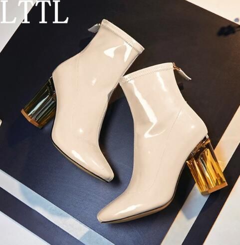 Compre Botas De Lluvia De Cuero De Moda Zapatos De Tacones Altos botas con tacon grueso