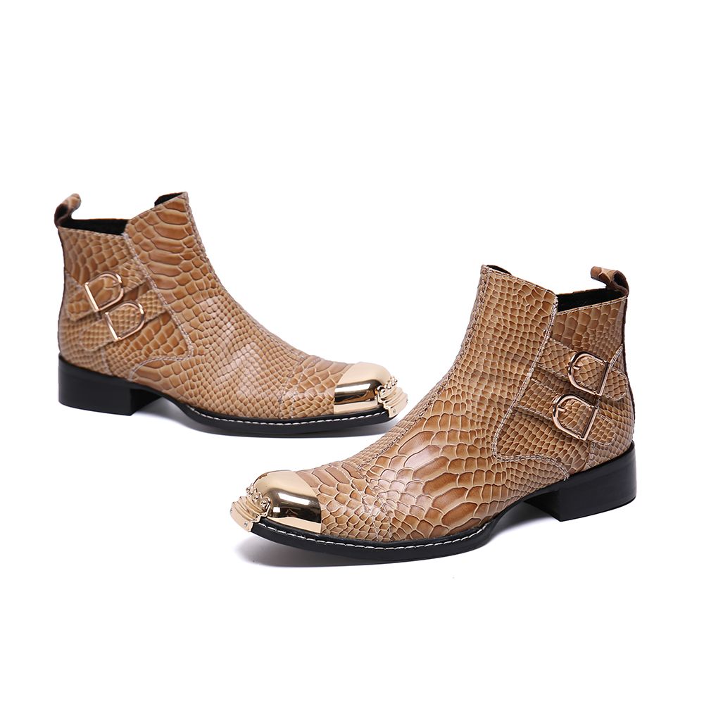 Compre Venta Caliente Bella New Snake Skin Botas Cortas De Cuero botas vaqueras con punta de metal