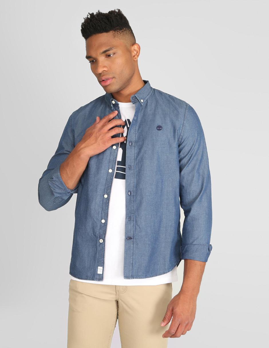 Camisa casual Timberland corte regular fit azul cielo denim en timberland azul cielo