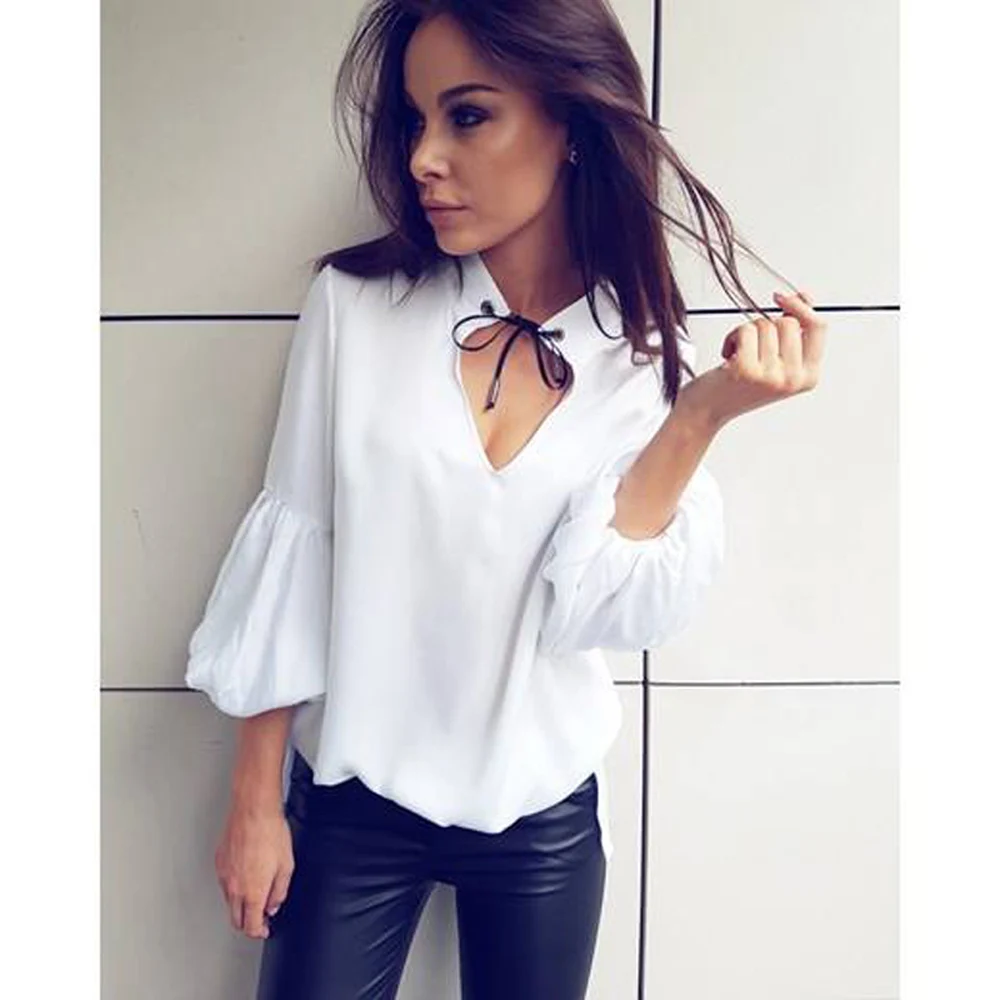 Compre Señoras De Las Mujeres Del Verano Tops Sueltos Camisa De Manga Tres Cuartos Blusa Informal Moda Nuevo V Cuello Blusas De Gasa A 7,77 € Del Crazy931 | DHgate.Com