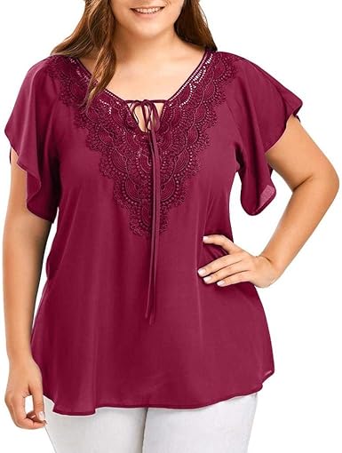 Mujer Chiffon Blusas Elegante Moda Verano Tallas Festival Grandes de Moda Blusas Manga Corta V Cuello Encaje Floral Color Sólido Camisas Delgado Anchas Classic Casual Tops: Amazon.es: Ropa y accesorios blusas elegantes de moda