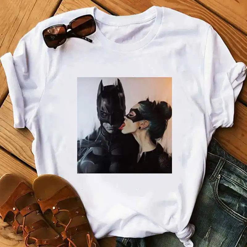Verano Mujer Camisetas Batman y Catwoman Kiss camiseta moda Cool camiseta chica blanca tops Camisetas manga corta tela| | - AliExpress camisetas de batman
