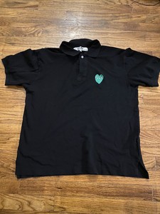 Hamburguesas des CDG Play Para Hombres Camisa Polo Negro Verde Corazón Logo Grande L | eBay camiseta polo negro
