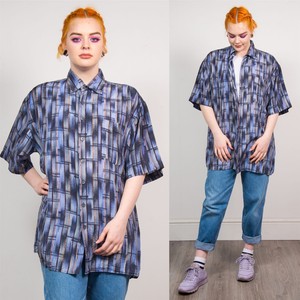 Blusa Camisa Azul Geométrico Vintage Manga corta para mujer años 90 Estilo Casual 14 16 | eBay blusas de los 90