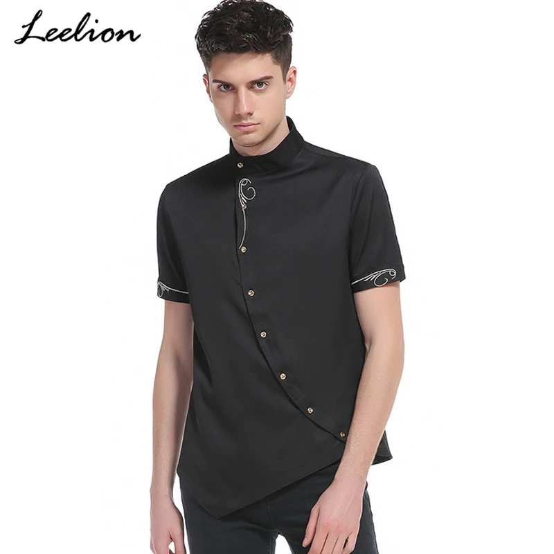 LeeLion 2018 Primavera Verano Camisa de manga corta Hombre oblicuo Irregular moda bordado Camisa Masculina ajustada Fit camisas|Camisas informales| - AliExpress camisa manga corta hombre 2018
