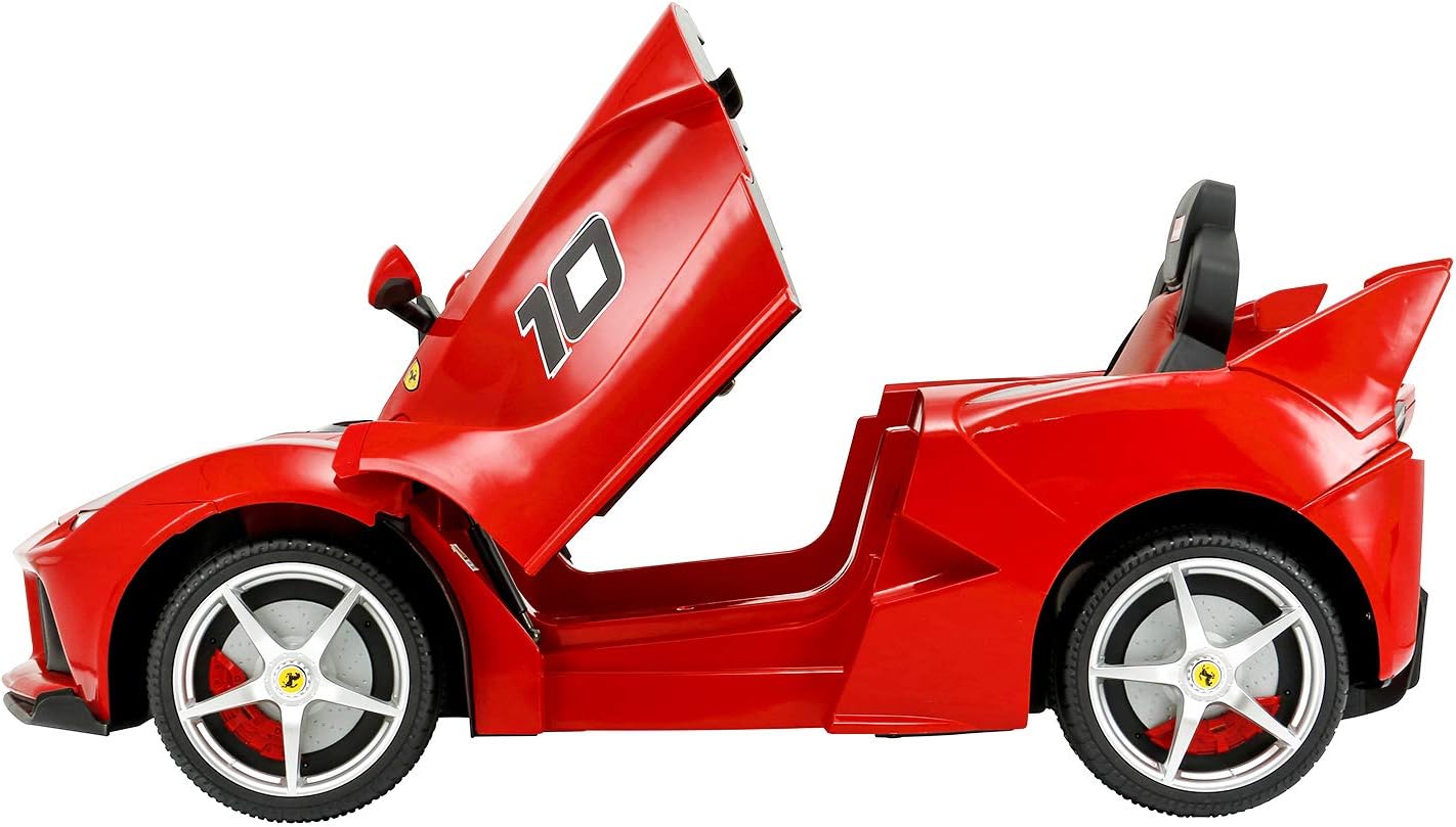 Amazon.com: Ferrari Laferrari FXX K - Coche eléctrico para niños con control remoto de 2,4 G, 12 V, 2 motores, puerta abatible, asiento de piel, luz LED y toma MP3, adhesivo para ferrari montable eléctrico laferrari 12v control remoto