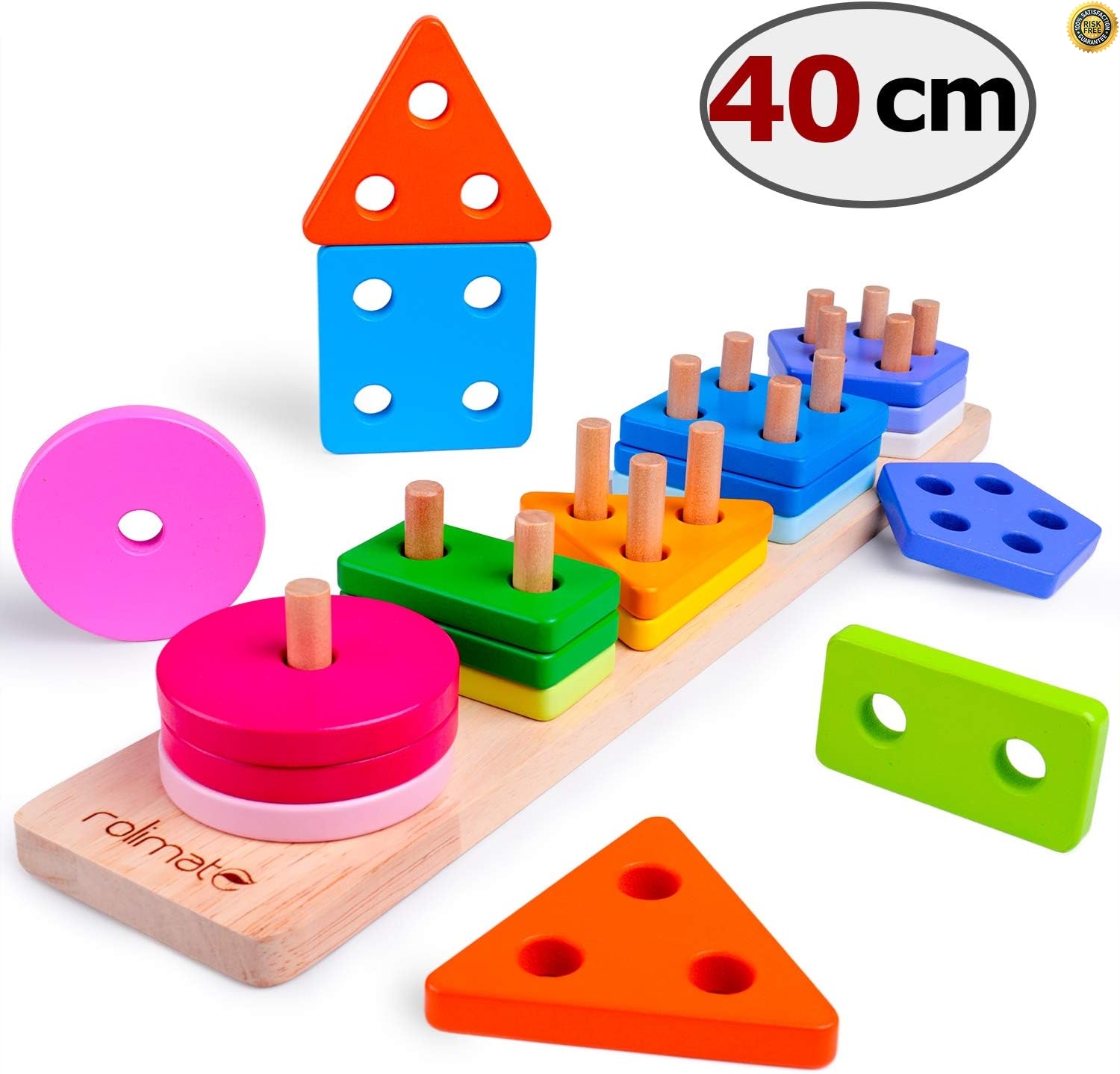 Amazon.com: BettRoom Juguetes educativos de madera para niños de 1, 2, 3, 4, 5 años, para reconocer formas y colores, bloques geométricos de tablero, no es tóxico, para niños y bebés, de