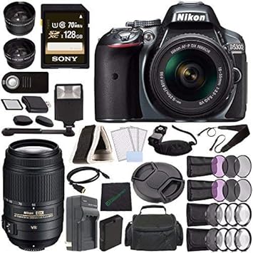 Amazon.com: Nikon D5300 °Cámara réflex digital con lente 18 – 55 mm. (Gris) + Nikon AF-S DX NIKKOR F/4.5 – 5.6 G ED VR + Batería + Cargador + Sony 128 GB nikon d5300 precio amazon