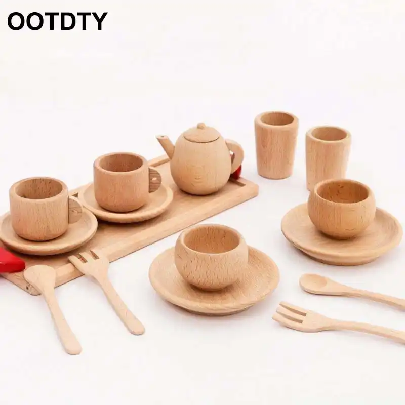 Amazon.com: RANRANRANJJJ Pretend Play Juego de té de madera y serva, juego de 16 piezas, para niños, cocina, fiesta, papel, juguete de Navidad, regalo, taza de café, platillo: Home \u0026 Kitchen