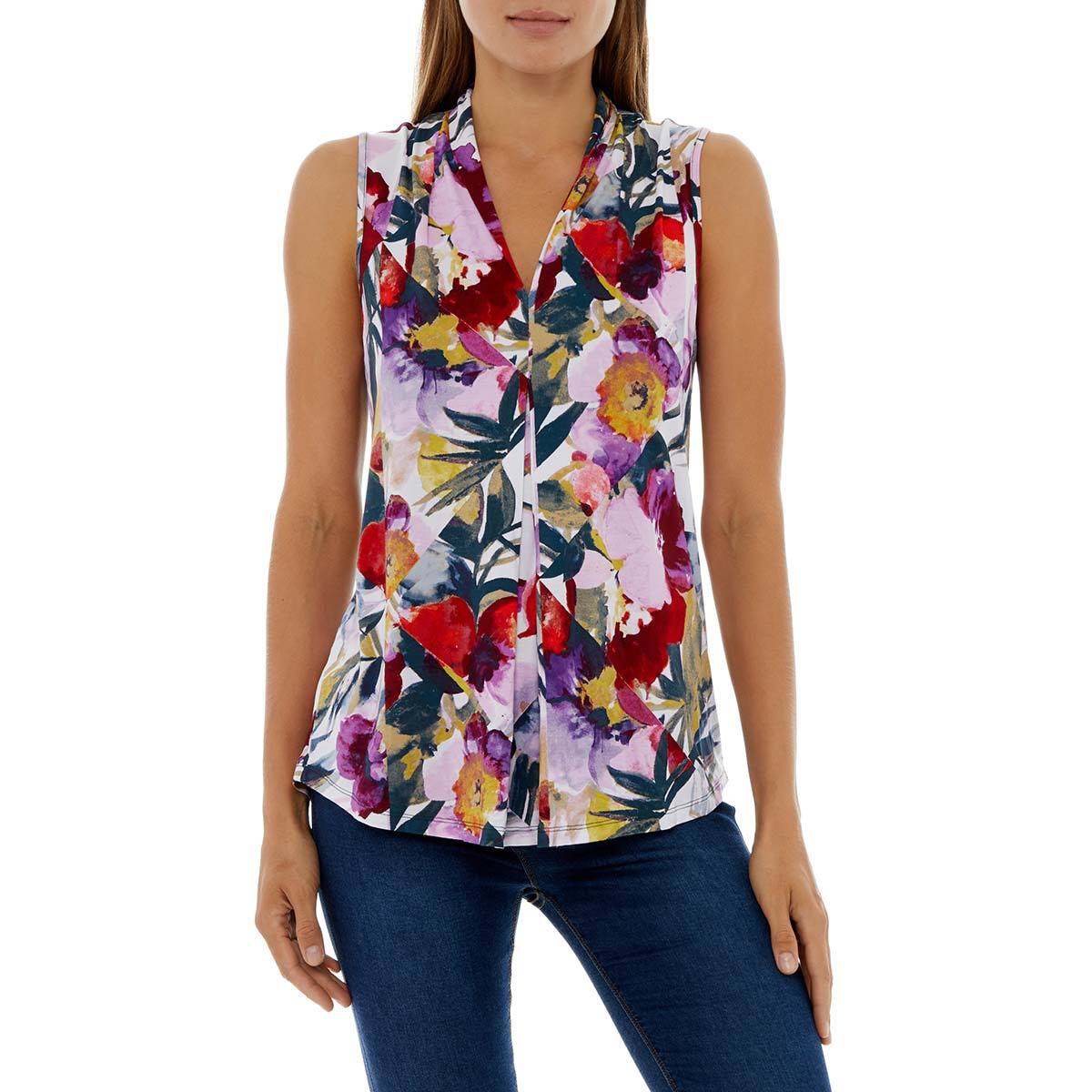 Cable \u0026 Gauge, Blusa con Estampado de Flores sin Mangas para Dama blusas de flores para dama