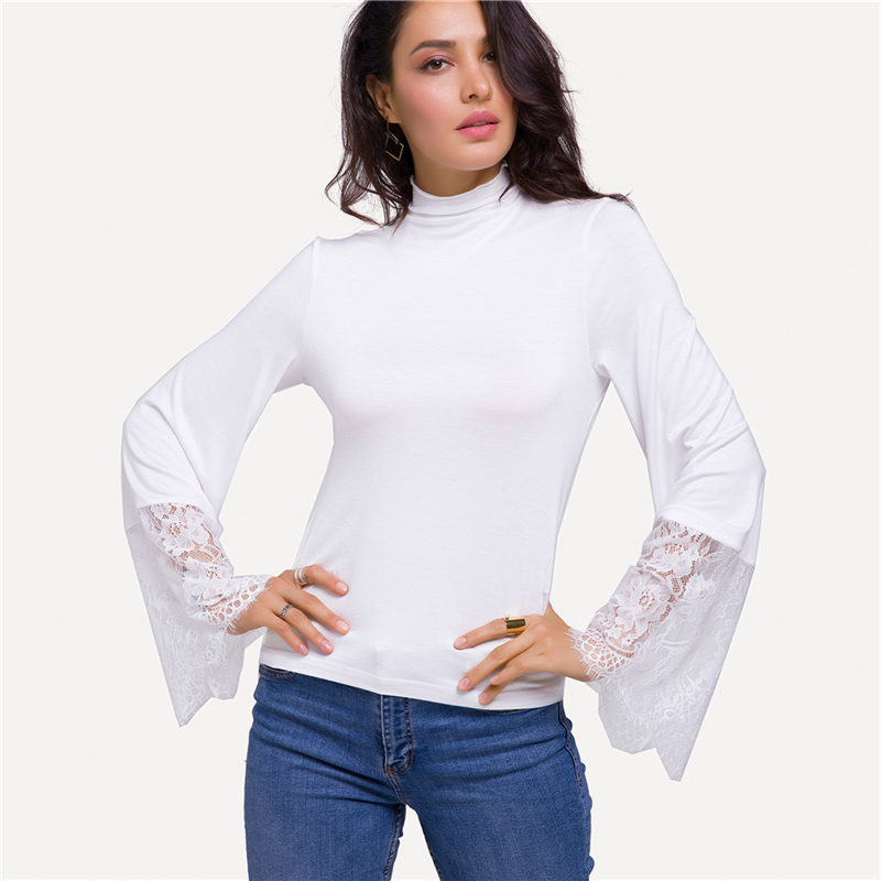 Moda mujer camiseta encaje