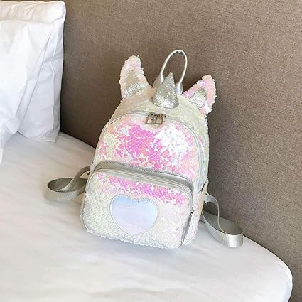 Yuhiugre mochila de lentejuelas con diseño de unicornio brillante con forma de corazón, casual, de viaje, para niñas y niñas, regalo para hija, color Silvery: Amazon.es: Oficina y papelería mochila unicornio brillante